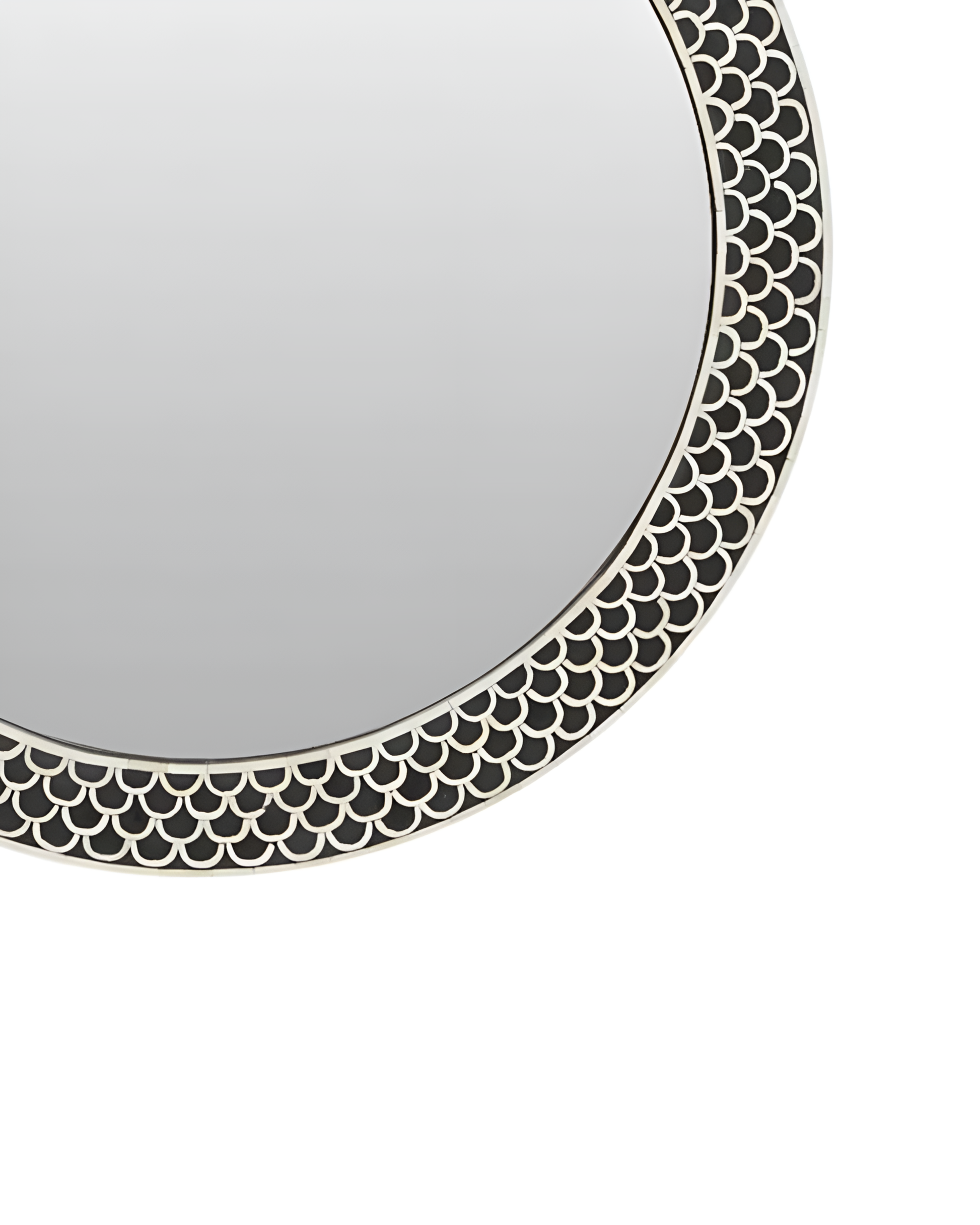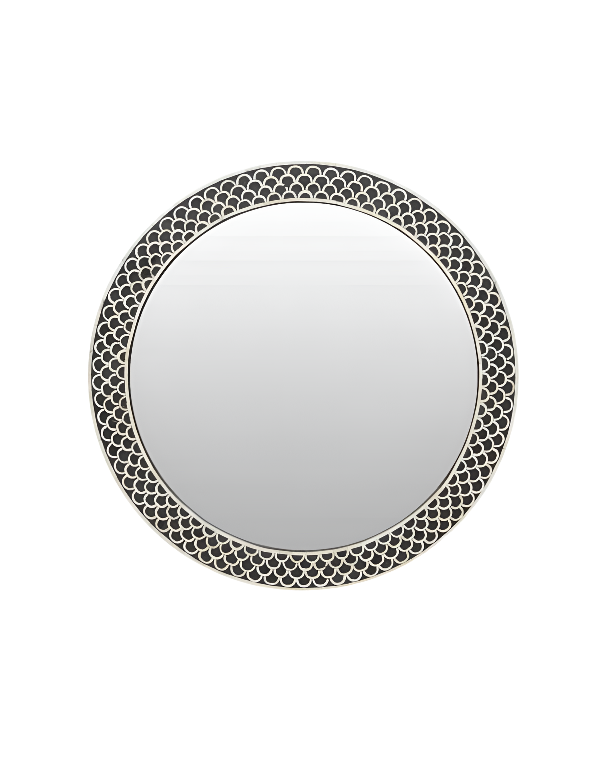 This exquisite bone inlay mirror serves as more than a reflective surface; it acts as a centerpiece that redefines any space. Featuring an elaborate scalloped design, it offers refined texture and visual intrigue, making it a sophisticated and striking statement item.