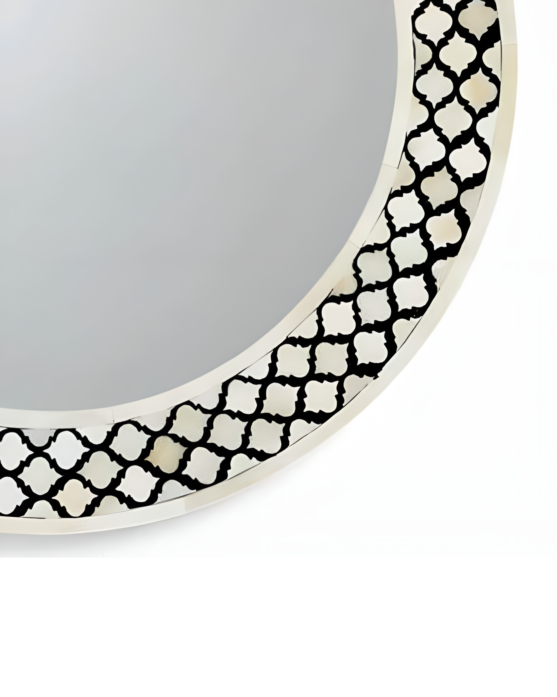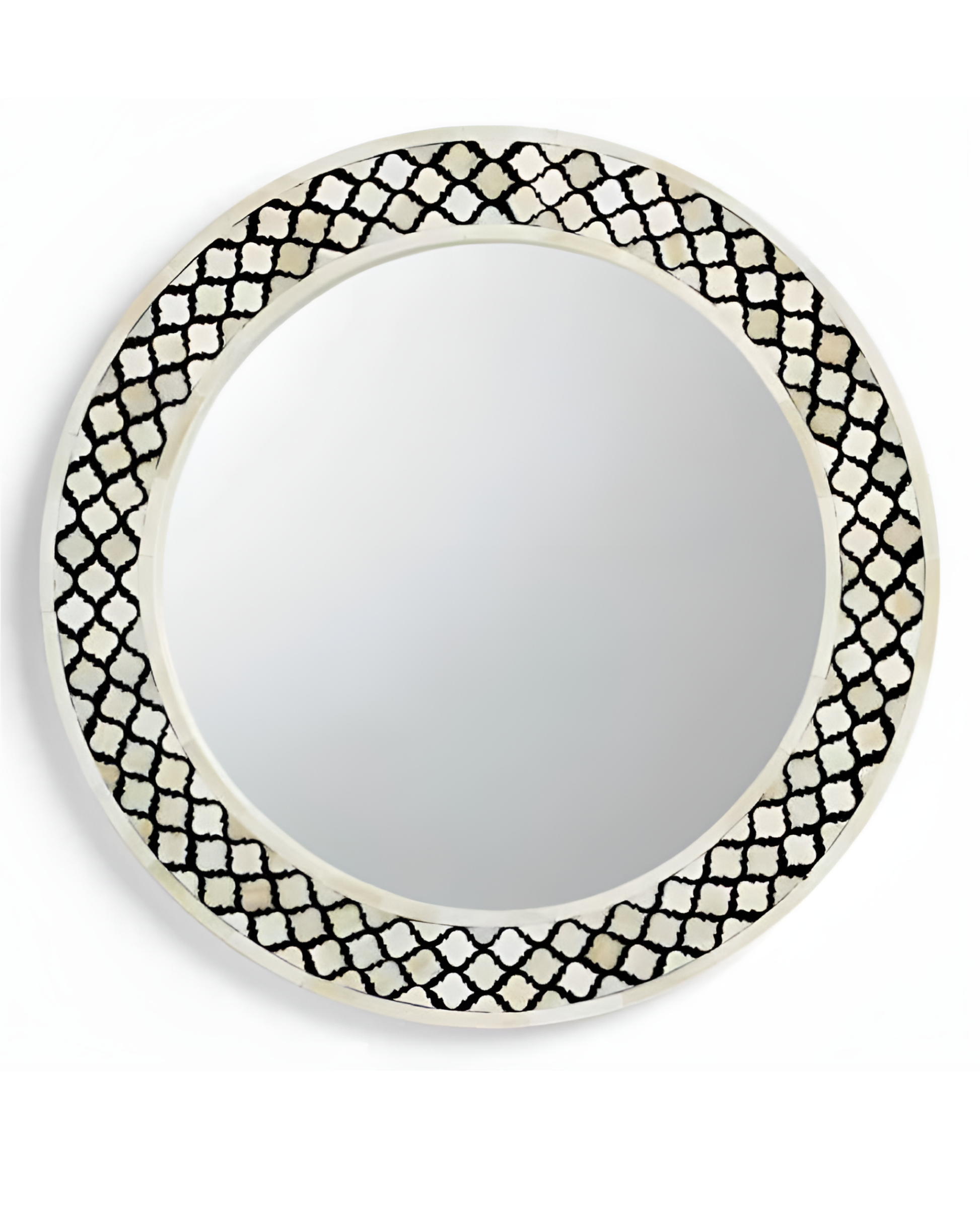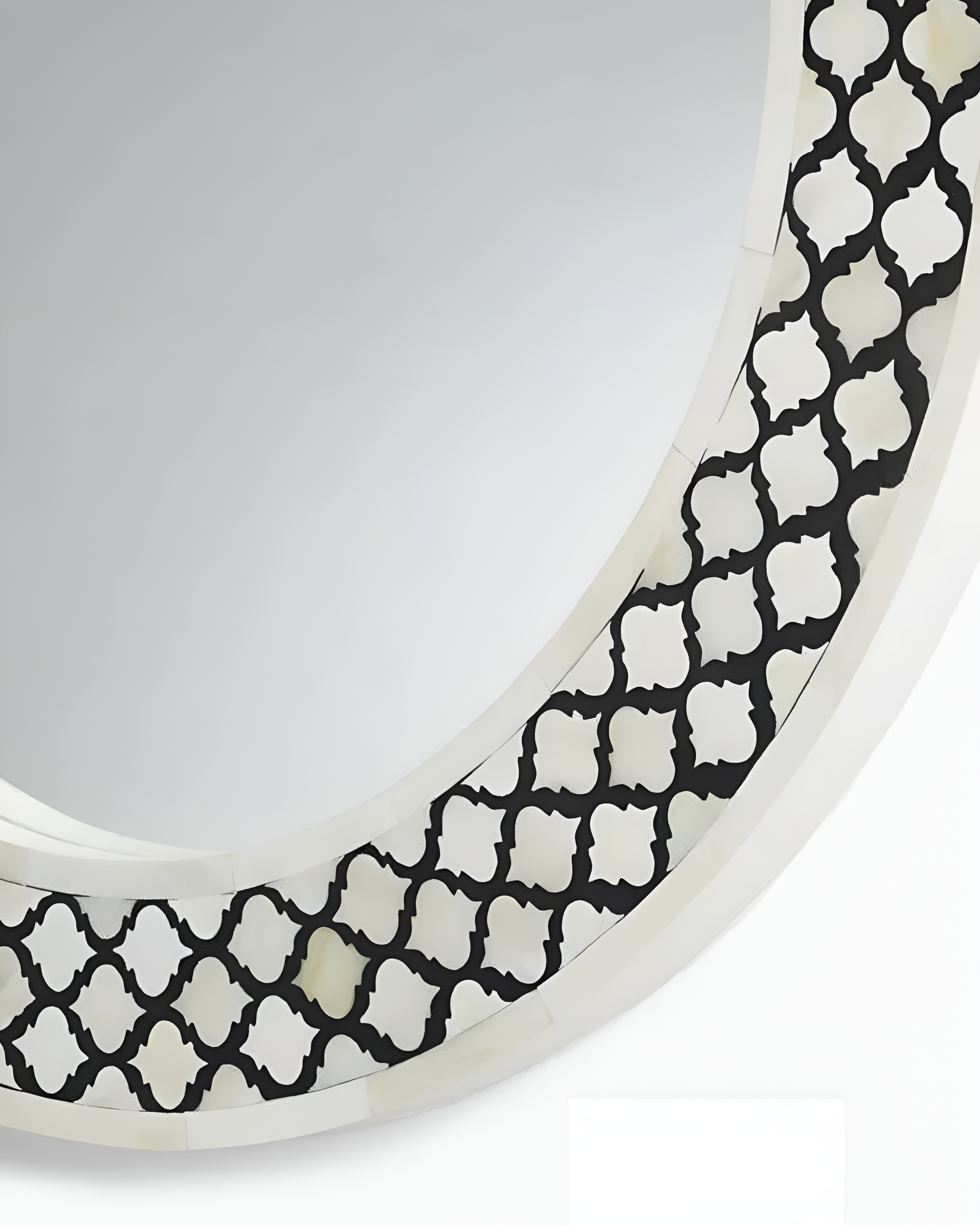 This exquisitely handcrafted bone inlay mirror serves as a versatile accent, seamlessly enhancing diverse décor styles. Featuring a bold black and white bone inlay, the mirror highlights intricate patterns crafted with exceptional precision. The refined texture and visual complexity reflect the artisan’s expertise, making it a distinguished statement piece that enriches any interior setting.