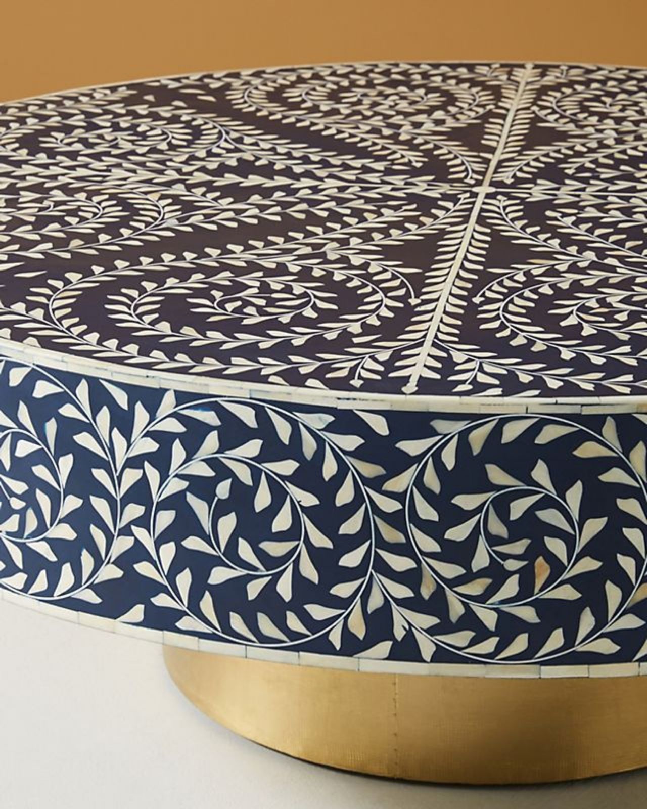 Elevate your living space with the meticulously crafted Sapphire Foliage Round Table. This exceptional piece combines the detailed skill of classic artisanship with a striking modern design, resulting in a centerpiece that is as aesthetically impressive as it is highly functional.