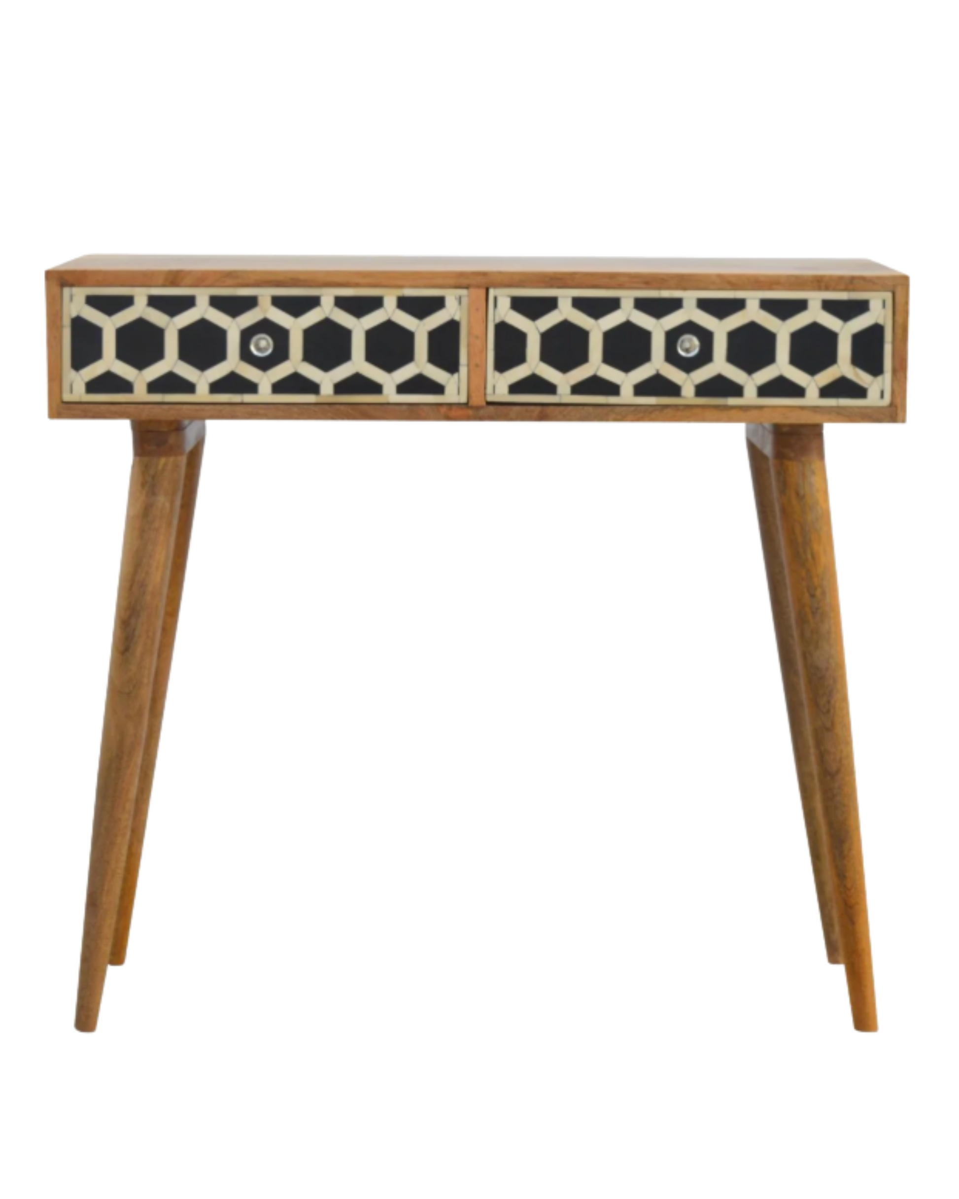 Introduce a piece of functional art into your home with this captivating The Ark Console. It seamlessly blends the warmth of mid-century modern design with the intricate detail of handcrafted bone inlay, creating a piece that is both stylish and practical.